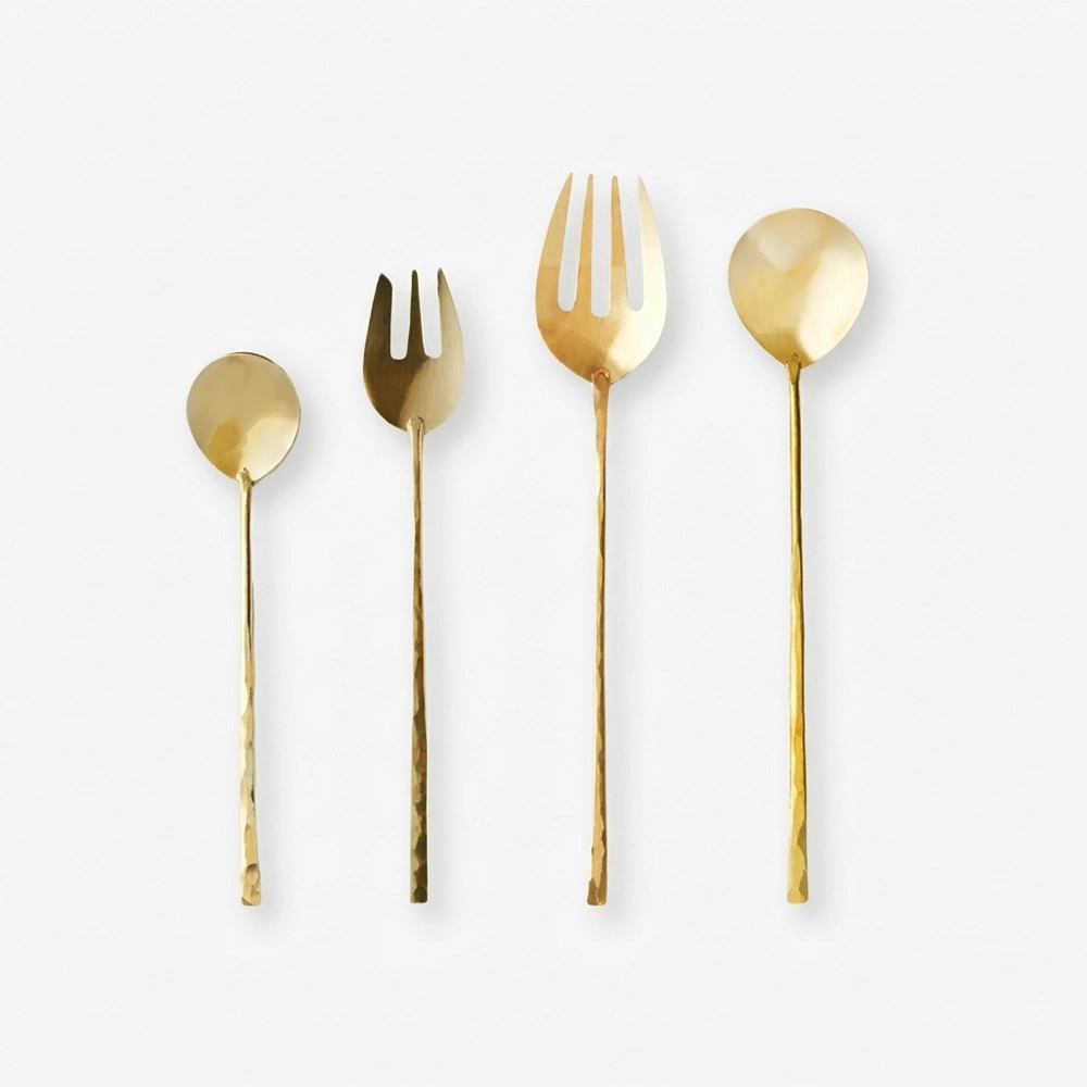 手仕事の温かみを感じる、Lueのカトラリーシリーズ。真鍮を使い、一つひとつ丁寧に作り上げられたスプーンとフォークは、使うほどに味わいが深まります。シンプルながら存在感のあるデザインが、食卓にさりげないアクセントを加えます。日常使いから特別なシーンまで、長く愛用できる逸品です。
