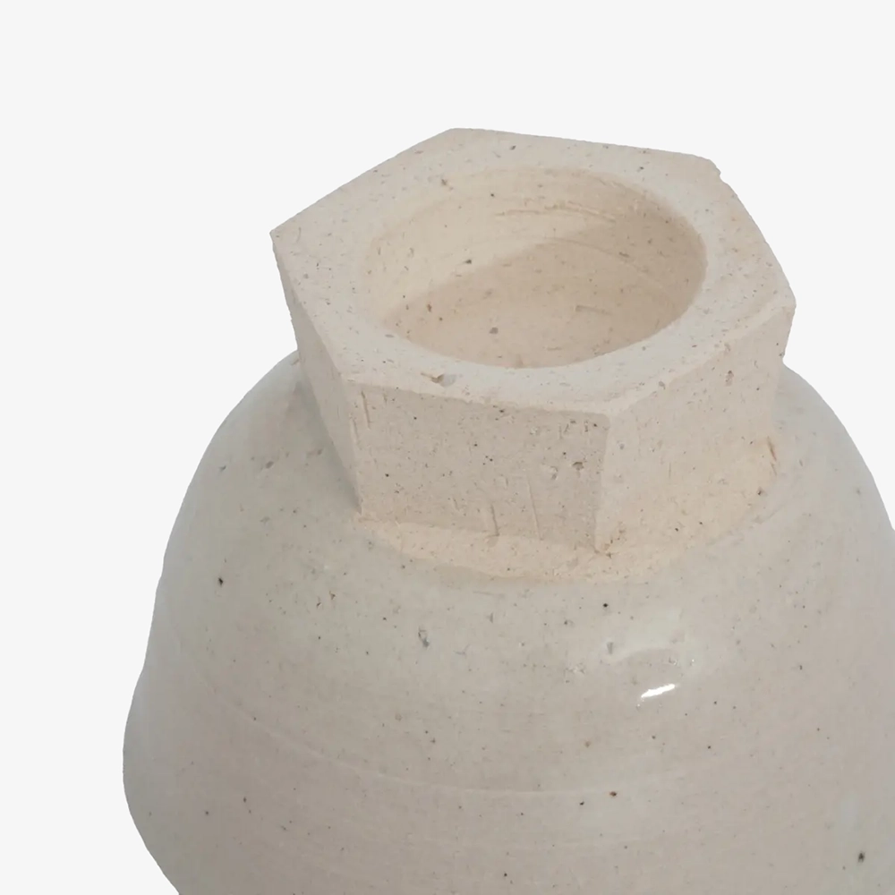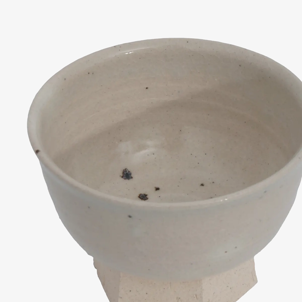 土ものの伝統が息づく伊賀で作った、個性豊かな器です。ぽってりとしたフォルムと角の立った六角形の台座、つるりとした釉薬と台座の素地の素朴な風合い。手に取ると伊賀土のざっくりとした手触りを感じつつ、対照的な組み合わせが和食器のぽってりさを感じない仕上がりです。