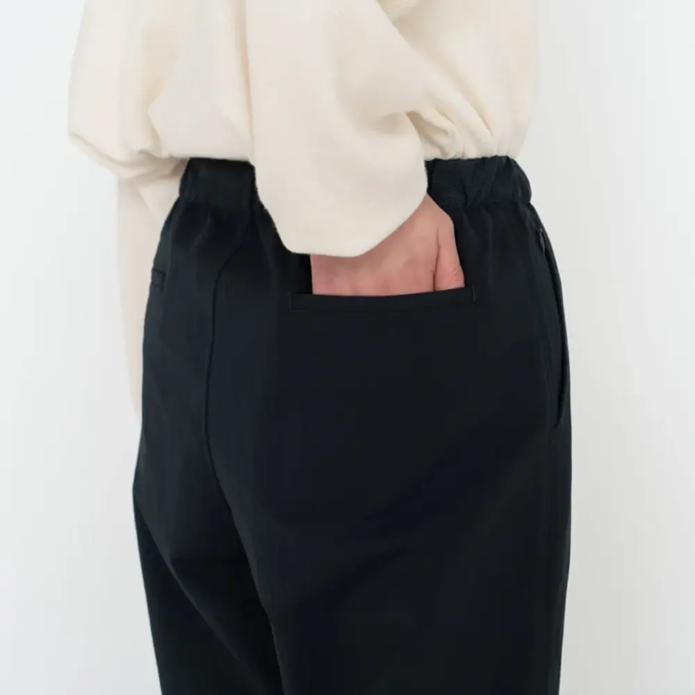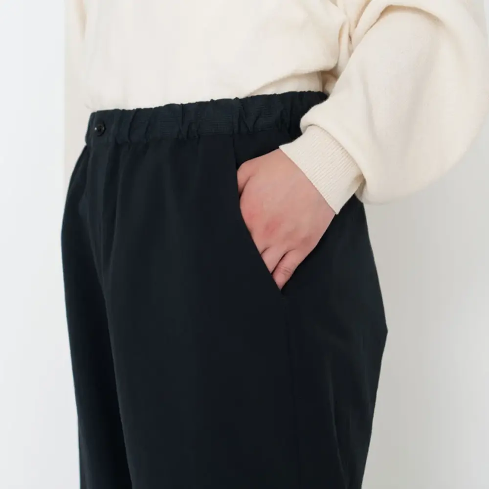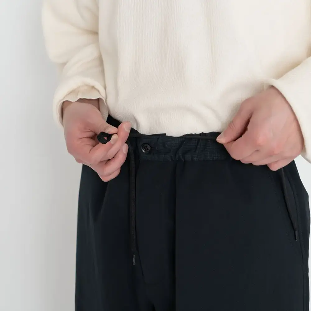 着る人自身の体温=遠赤外線を効率的に輻射し体に戻すことで、自然なあたたかさをキープし、衣服内を快適な温度に保つことで心地よい休息時間をサポートします。ウエストにゴムとスピンドル(紐)を施し、サイズ調整が可能なイージ仕様に。フロントはジッパータイプ。サイドポケットはスリットポケットとモバイルフォンサイズのコンシールファスナーポケットの収納口があります。