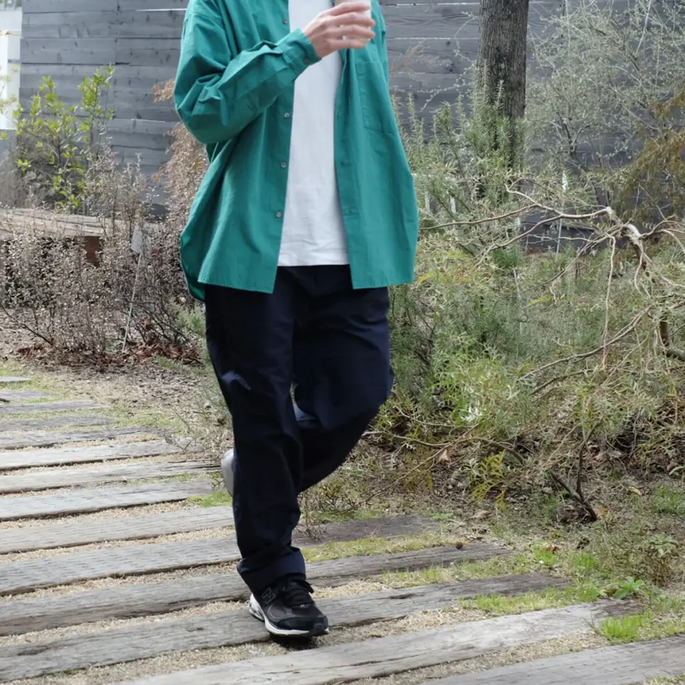 ヒップとウエストにボリューム感を出しながらも裾に向かってきれいなテーパードラインを形成しているので、レギュラーシルエットで活用いただけます。