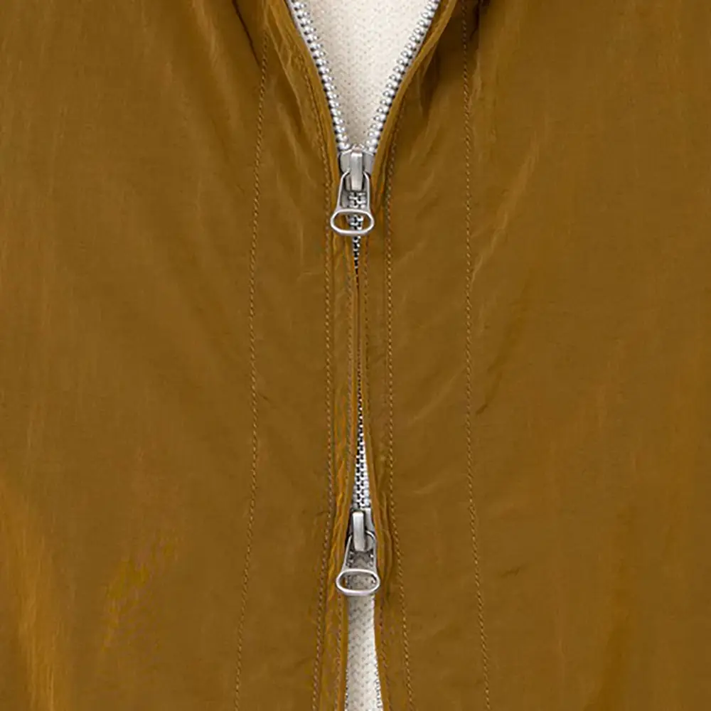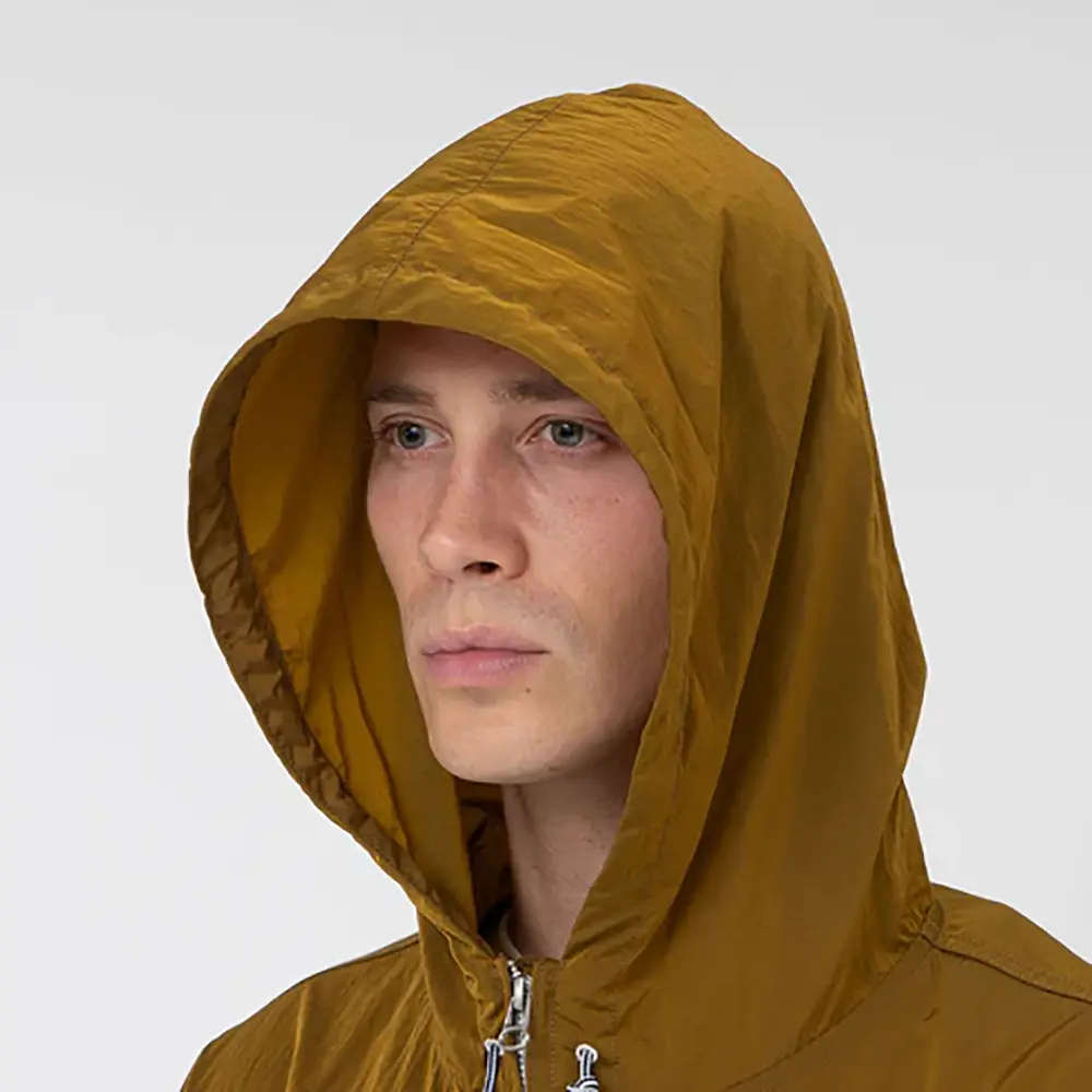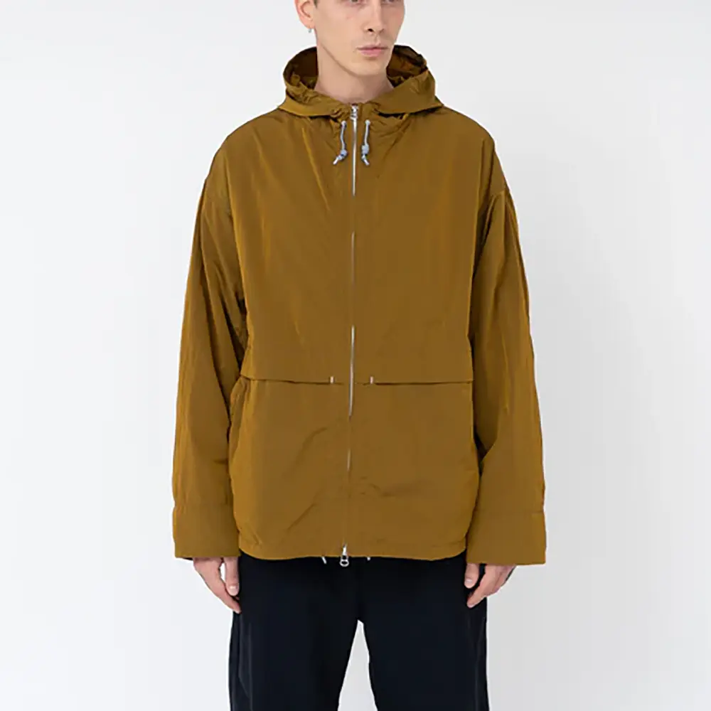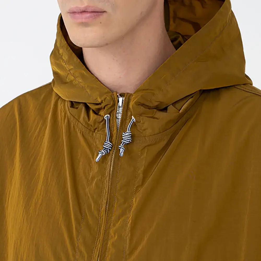 リサイクルナイロンタフタを使用したジップアップパーカー。