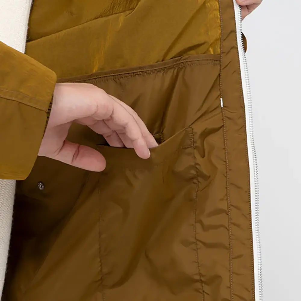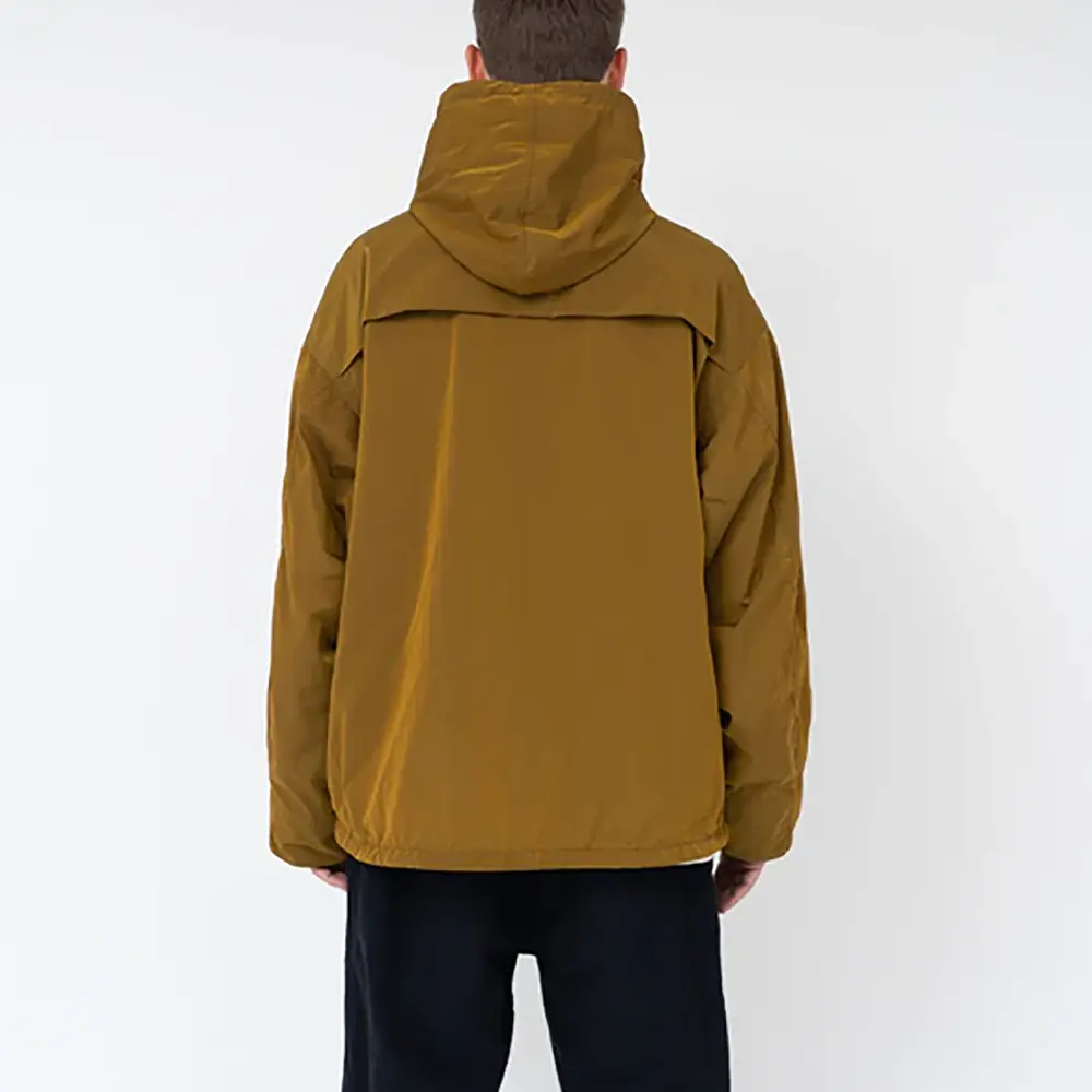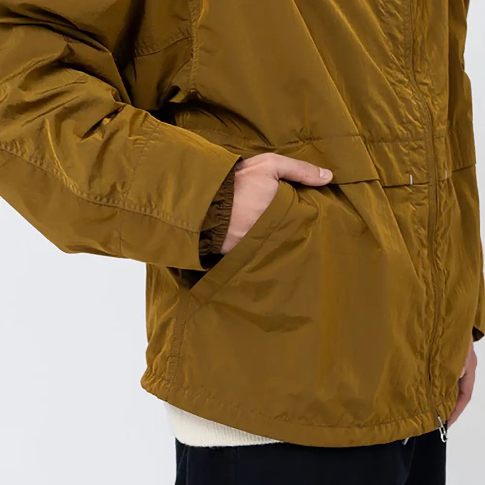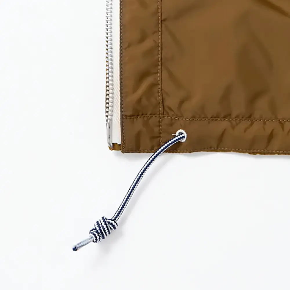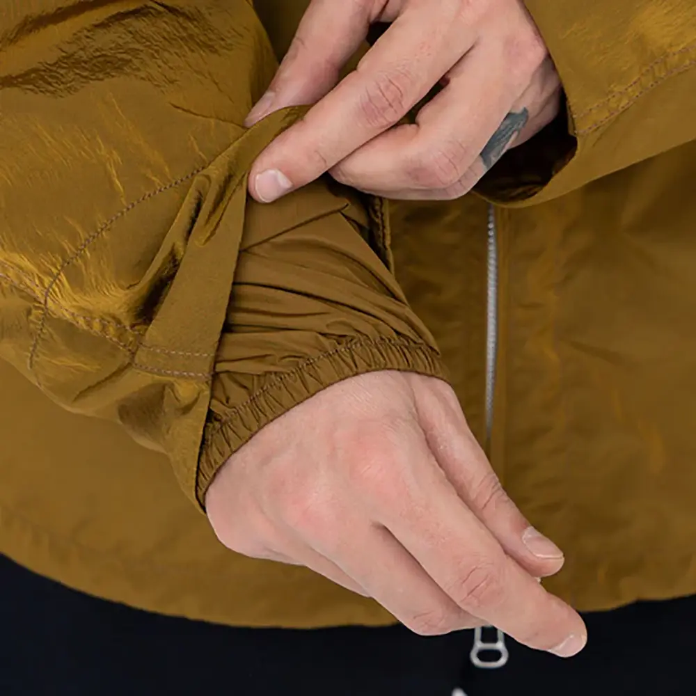 リサイクルナイロンタフタを使用したジップアップパーカー。