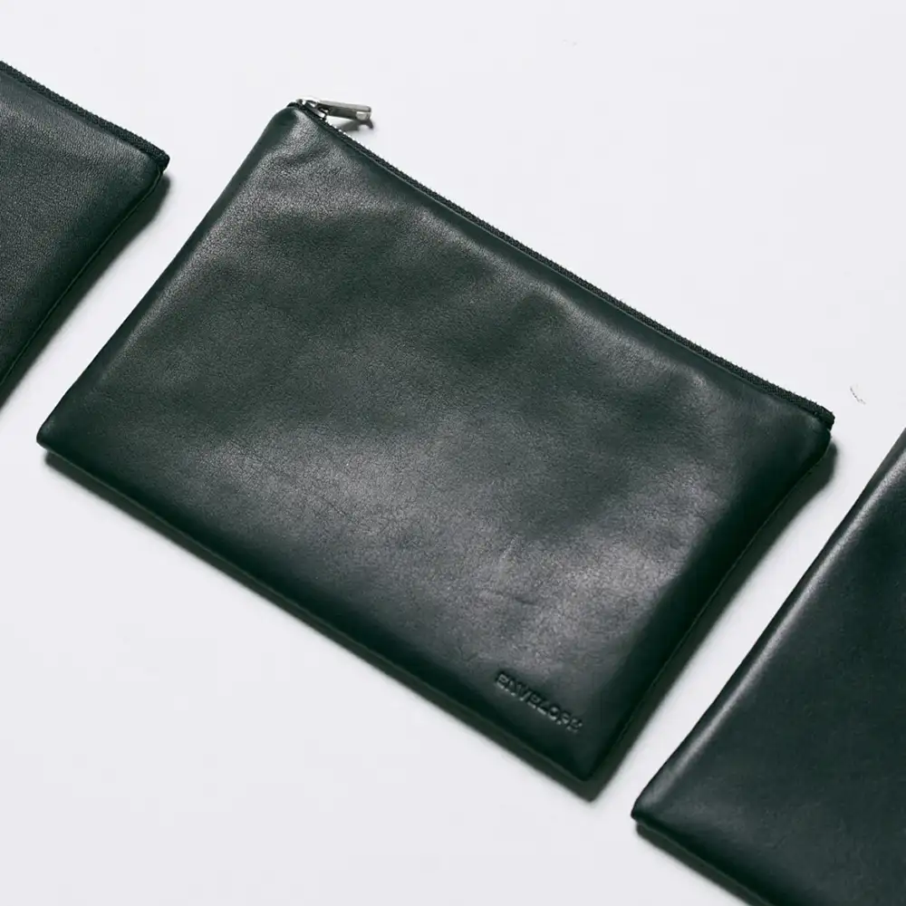 極端に柔らかくなめした牛革を使用し、直線を基調としたミニマルなビジネスアイテムに仕上げました。