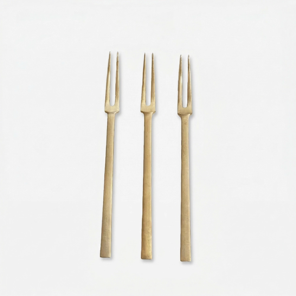 酸化防止加工は施されていないため、経年変化によって真鍮が黒ずみ、渋みを増してゆきます。コンパクトで細身なので、カットフルーツやチーズなどのピック、和菓子の黒文字の代わりとしてもお使いいただけます。真鍮のしっかりとした雰囲気もあるのでお客様のおもてなしにも。