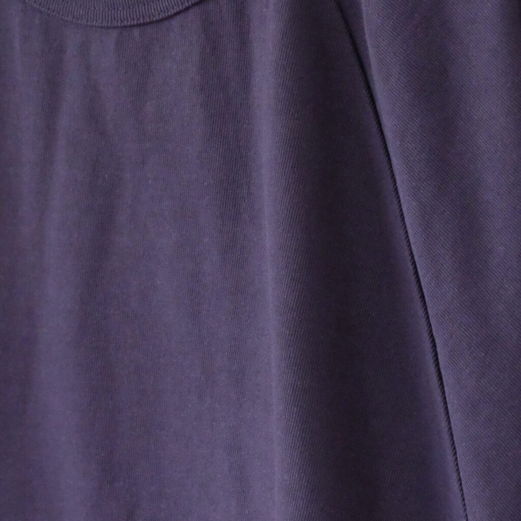 希少なドイツ製のジャンベルカ編み機で編み立てられた天竺生地は、ふっくらとした風合いと優れたキックバック性が特徴です。空気紡績糸を使用し、ハリとコシを持たせながらも、特殊加工により滑らかな肌触りに仕上げています。