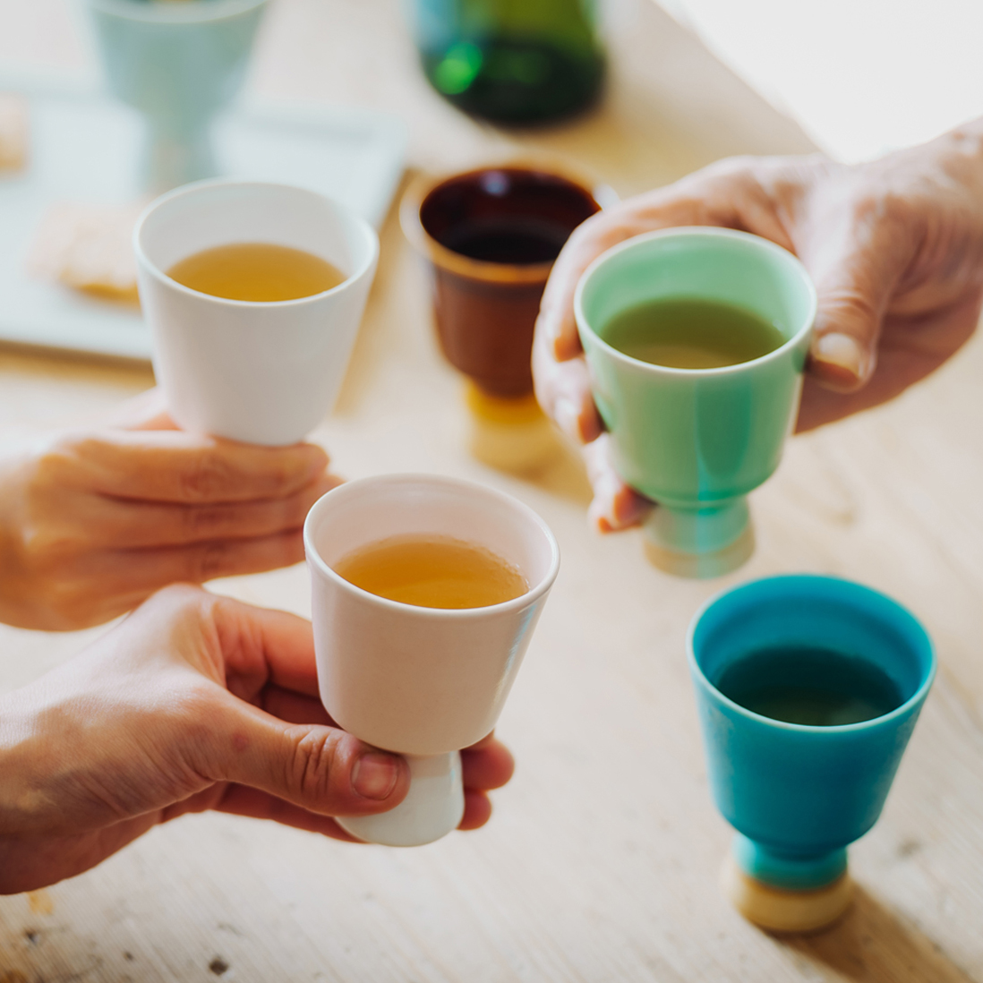 嬉しいシーンに取り出して、乾杯したくなる器「ゴブレット」。酒やソフトドリンクを飲むための脚付きの酒杯のことですが、石本藤雄の暮らしの中にもあり、幾度と杯を傾けてきました。シリーズ名のONNEAはフィンランド語で「おめでとう、お幸せに」という意味です。