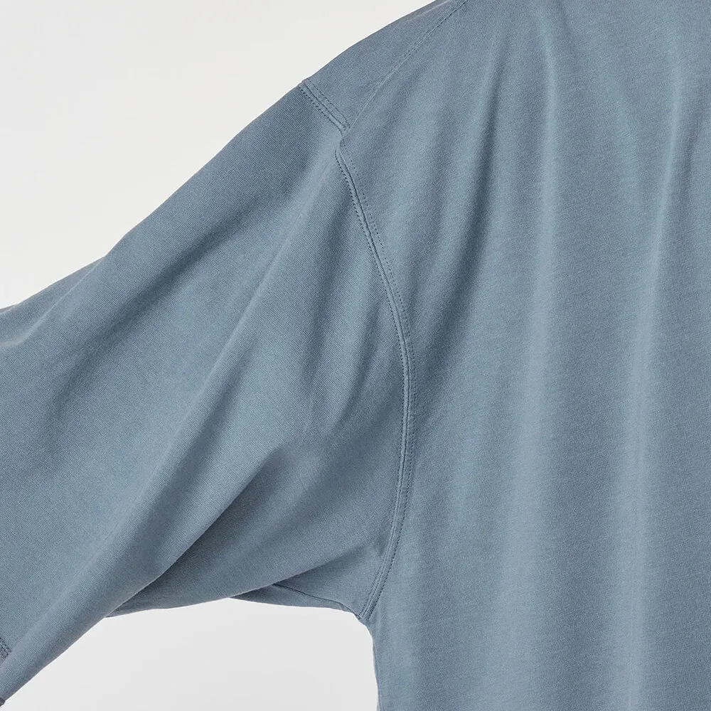 30番単糸のオーガニックコットン天竺を使用し、フロスト加工を施すことで、まるで長年着古したかのような絶妙な色褪せと毛羽感を表現したナナミカのポケットTシャツです。フロントのポケット下には「OOAL」、バックには「nanamica」の刺繍がさりげなくあしらわれ、ヴィンテージウェアのような奥行きのある表情に現代的なディテールを融合させています。ゆとりのあるオーバーサイズフィットがリラックスしたムードを放ち、さらりとした快適な肌触りとともに、こなれた大人のカジュアルスタイルを完成させてくれる一着です。